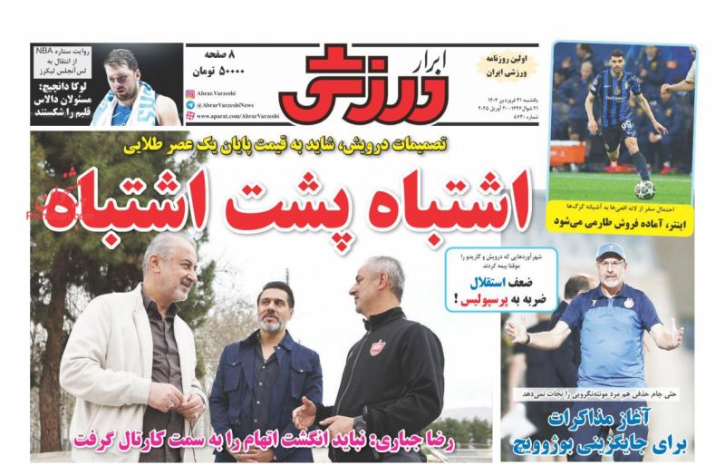 ابرار ورزشى ، یکشنبه ۳۱ فروردين