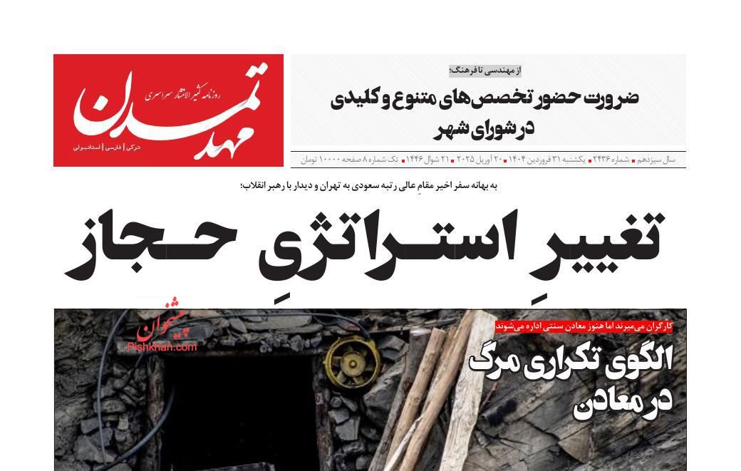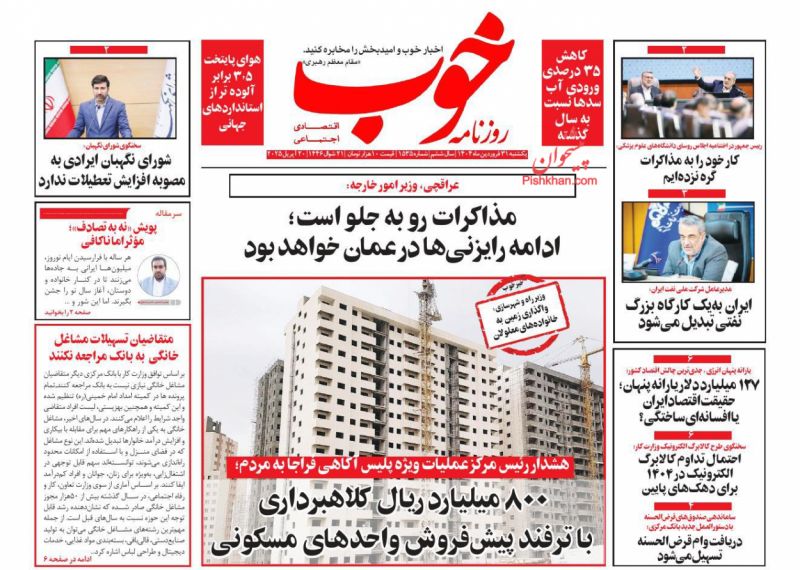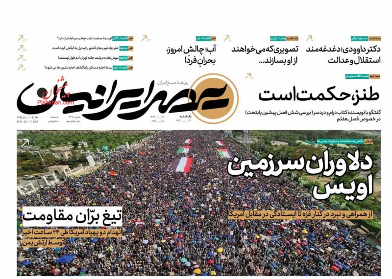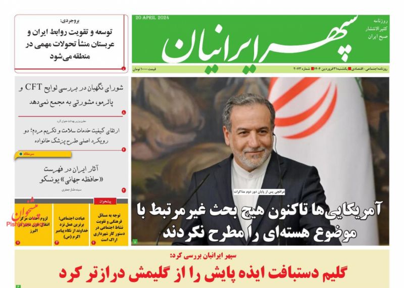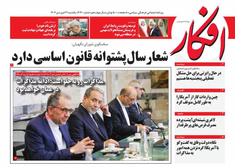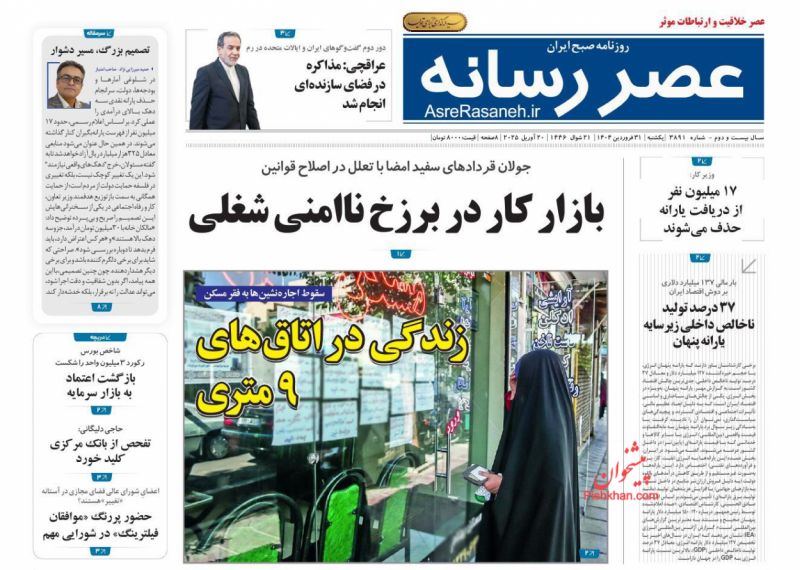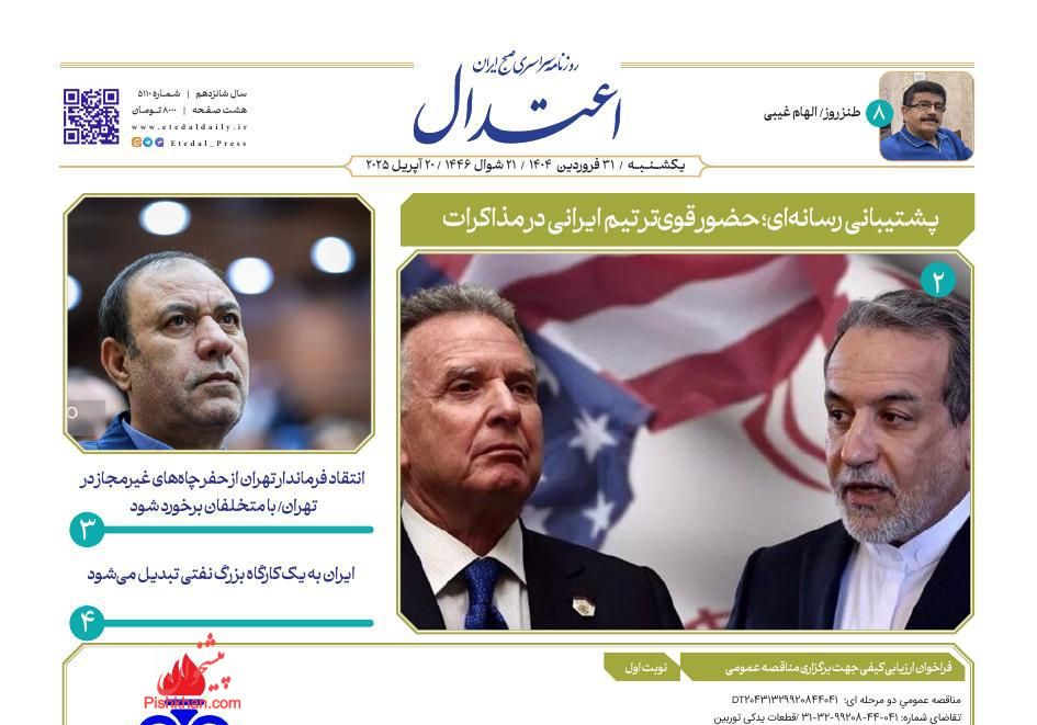 عصر ایرانیان ، یکشنبه ۳۱ فروردين