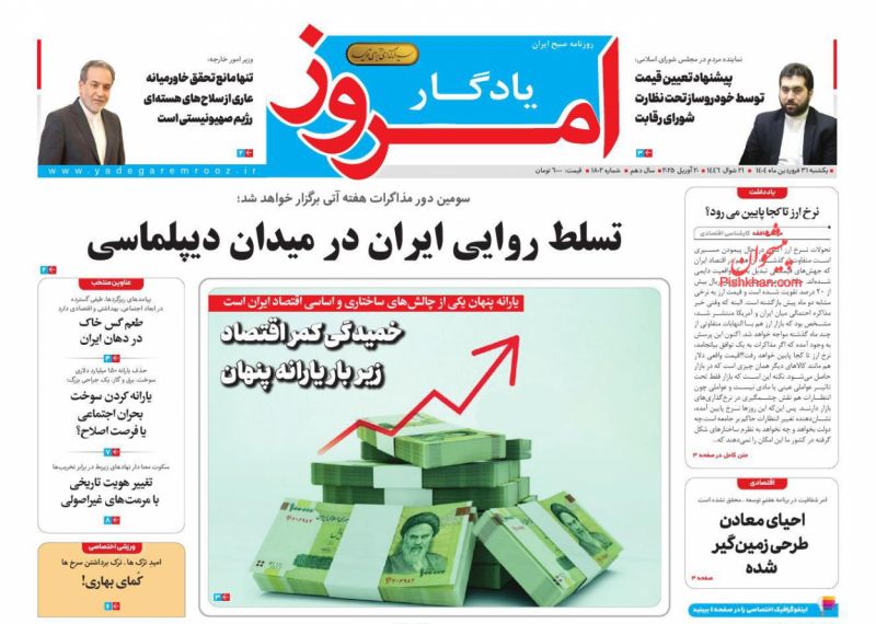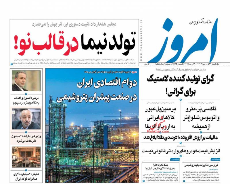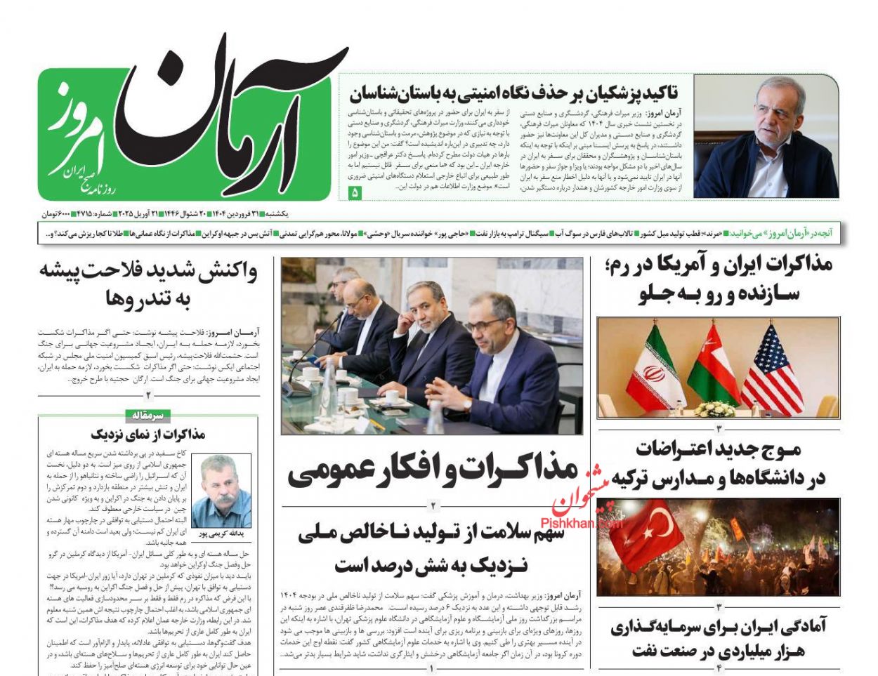 آرمان امروز ، یکشنبه ۳۱ فروردين