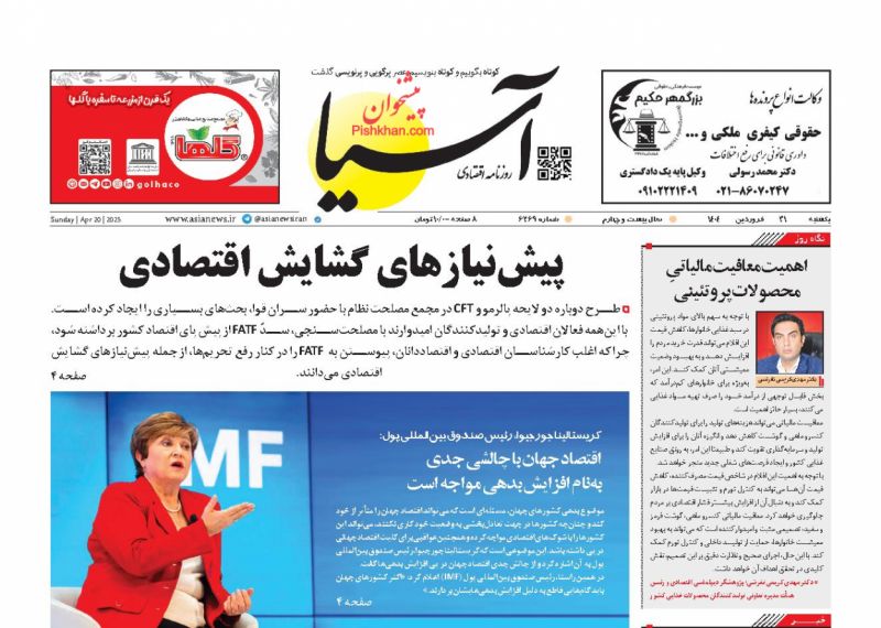 اقتصاد ملی ، یکشنبه ۳۱ فروردين