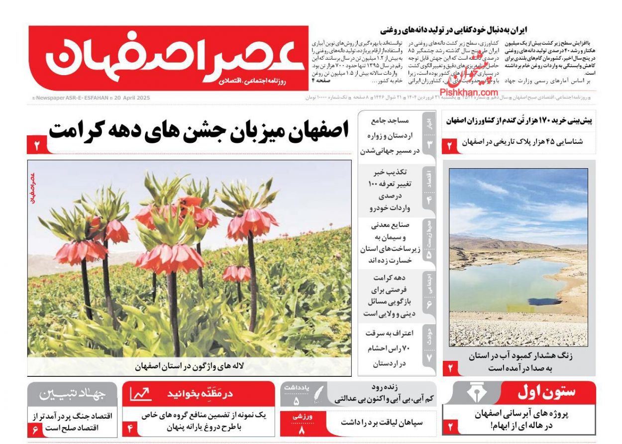 عصر اصفهان ، یکشنبه ۳۱ فروردين