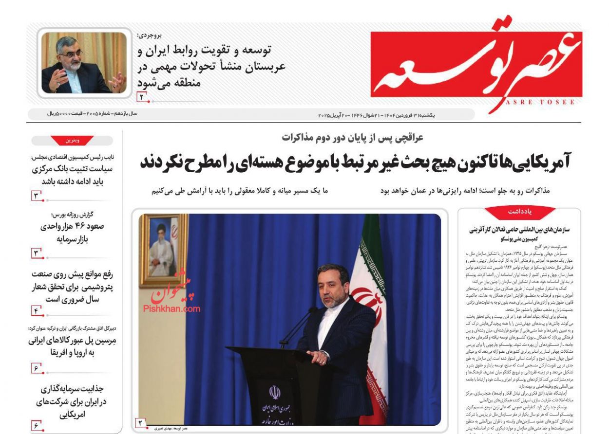 عصر توسعه ، یکشنبه ۳۱ فروردين