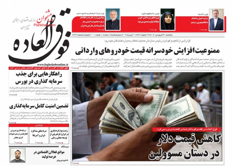 نقش اقتصاد ، یکشنبه ۳۱ فروردين