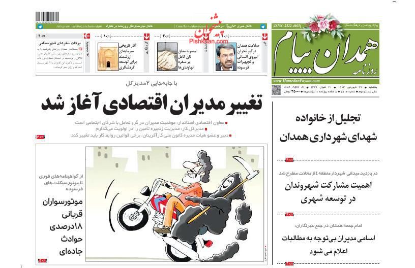 همدان پیام ، یکشنبه ۳۱ فروردين