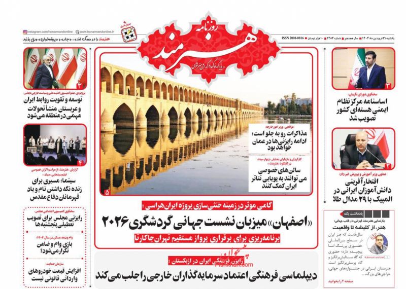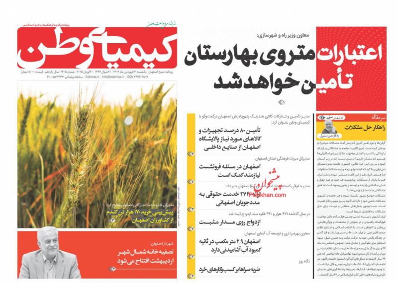 اصفهان امروز ، یکشنبه ۳۱ فروردين