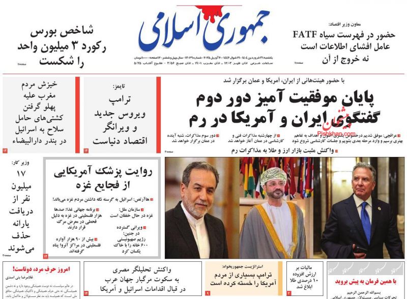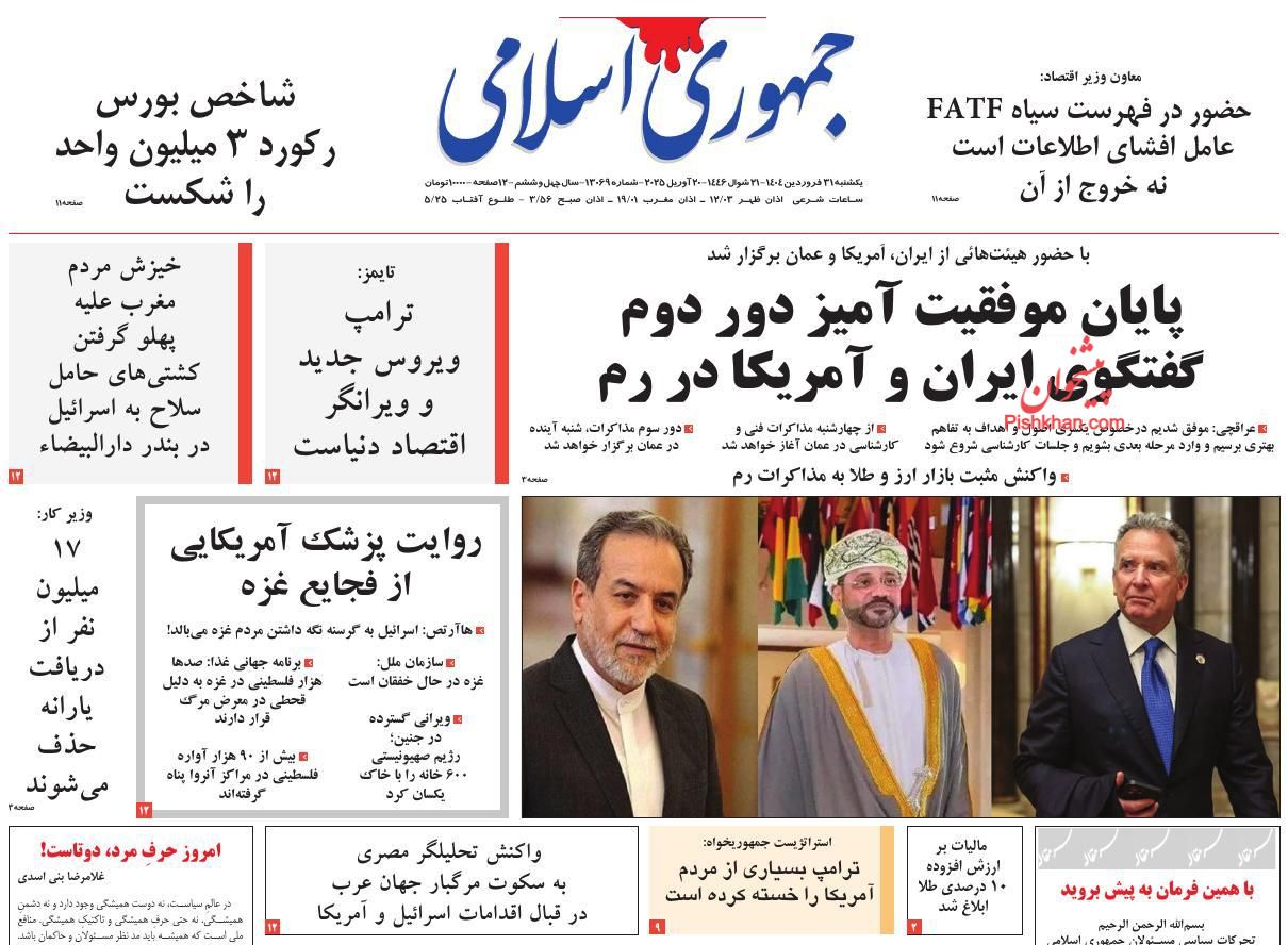 جمهوری اسلامی ، یکشنبه ۳۱ فروردين