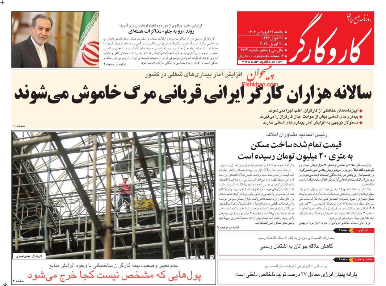کار و کارگر ، یکشنبه ۳۱ فروردين