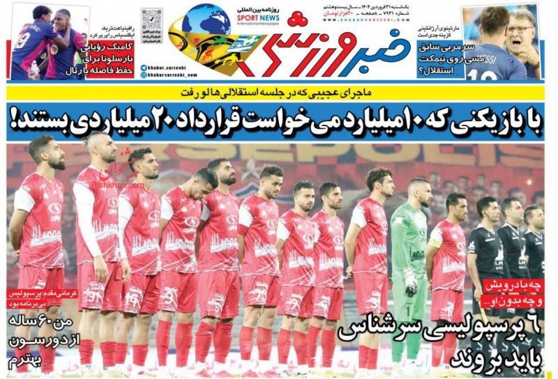 خبر ورزشی ، یکشنبه ۳۱ فروردين
