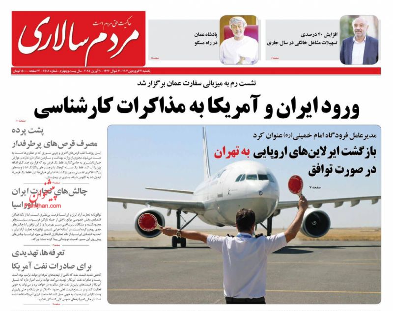 مردم سالاری ، یکشنبه ۳۱ فروردين