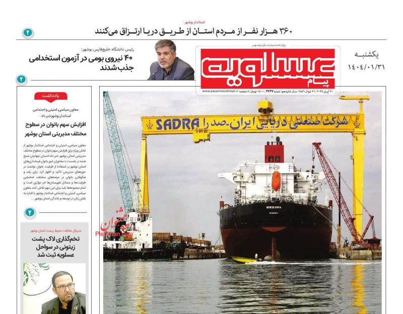 پیام عسلویه ، یکشنبه ۳۱ فروردين
