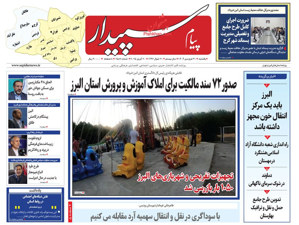 پیام سپیدار ، یکشنبه ۳۱ فروردين