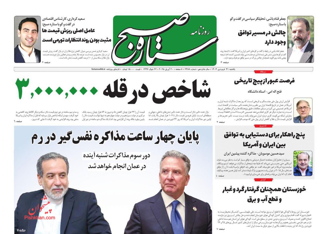 صبح امروز ، یکشنبه ۳۱ فروردين