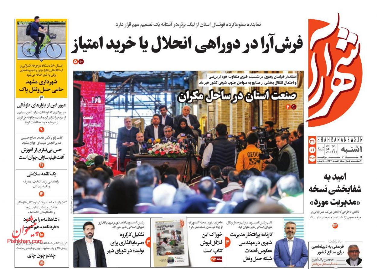 شهرآرا ، یکشنبه ۳۱ فروردين