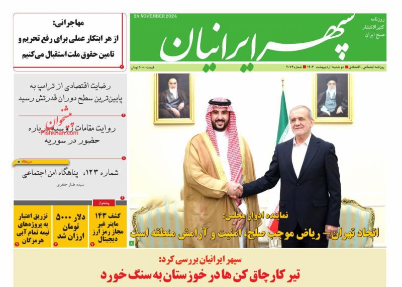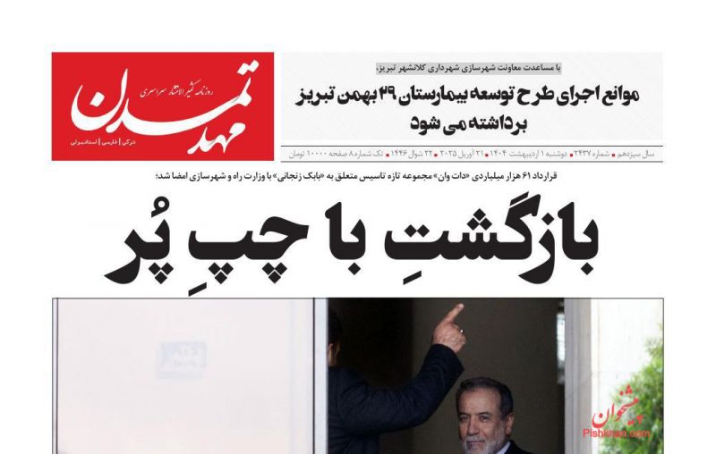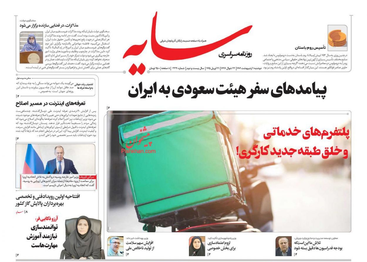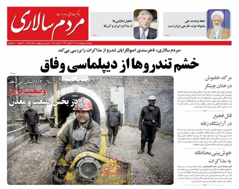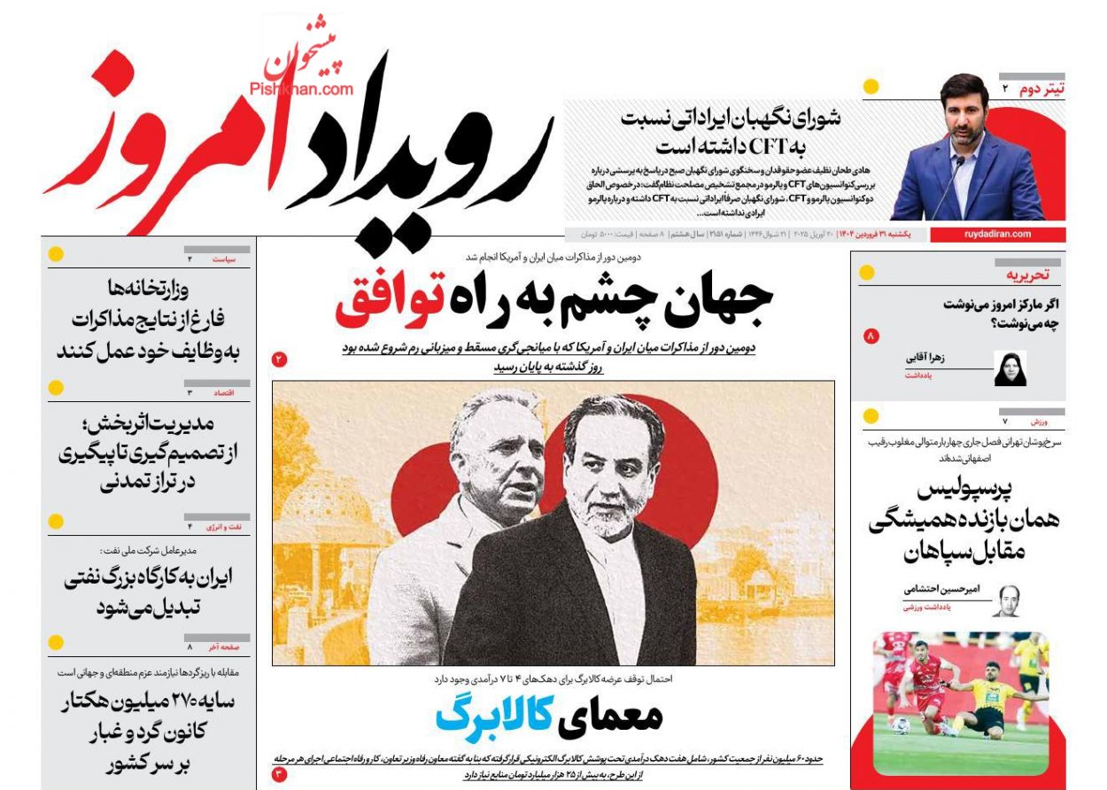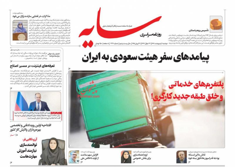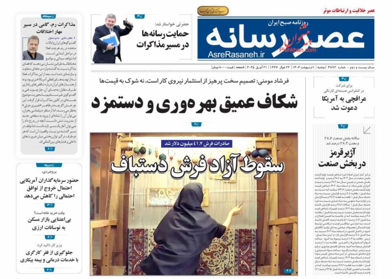 عصر ایرانیان ، دوشنبه ۱ ارديبهشت