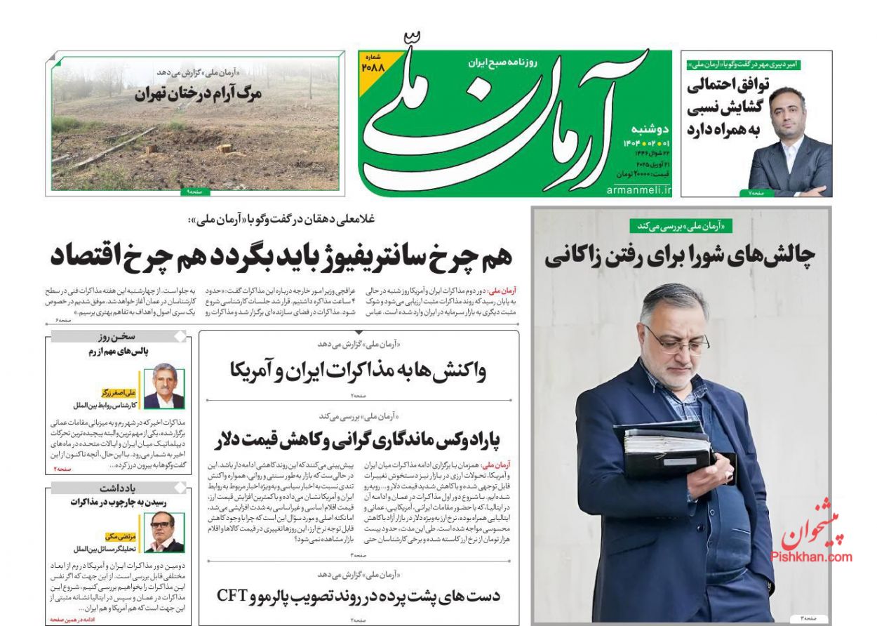 آرمان ملی ، دوشنبه ۱ ارديبهشت