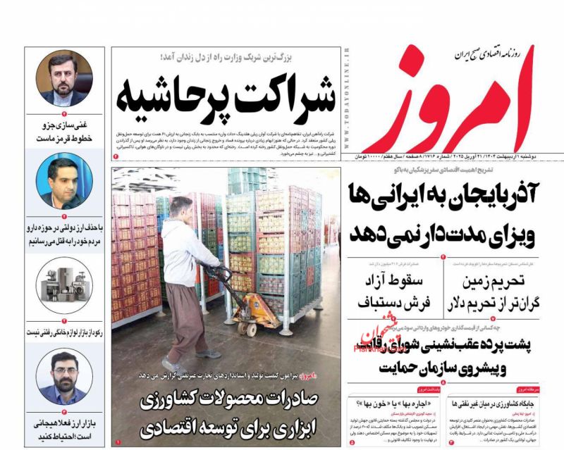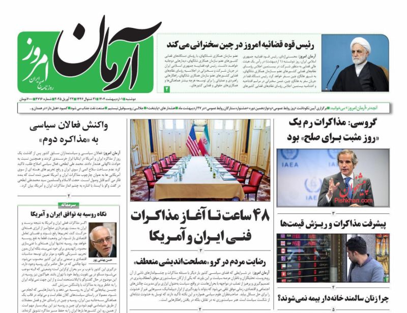 آرمان امروز ، دوشنبه ۱ ارديبهشت