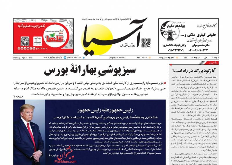مواجهه اقتصادی ، دوشنبه ۱ ارديبهشت