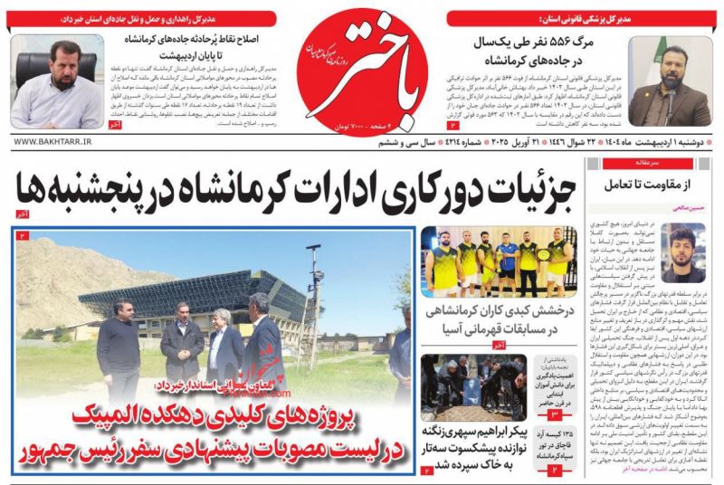 باختر ، دوشنبه ۱ ارديبهشت