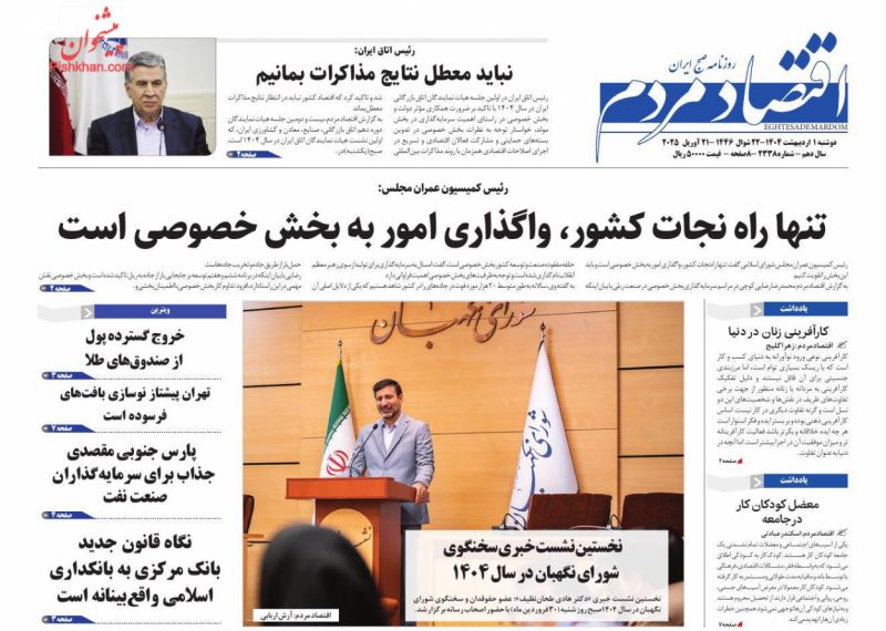 اقتصاد مردم ، دوشنبه ۱ ارديبهشت