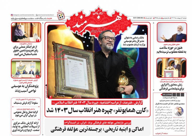 هنرمند ، دوشنبه ۱ ارديبهشت