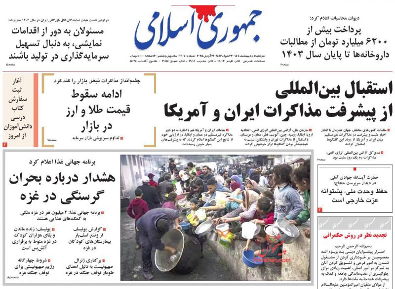 جمهوری اسلامی ، دوشنبه ۱ ارديبهشت