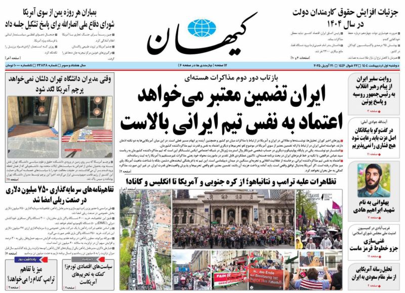 کيهان ، دوشنبه ۱ ارديبهشت