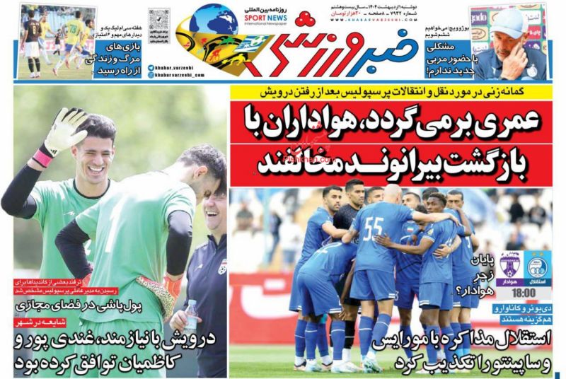 خبر ورزشی ، دوشنبه ۱ ارديبهشت