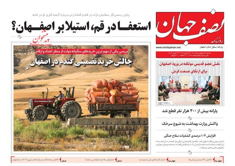 اصفهان امروز ، دوشنبه ۱ ارديبهشت