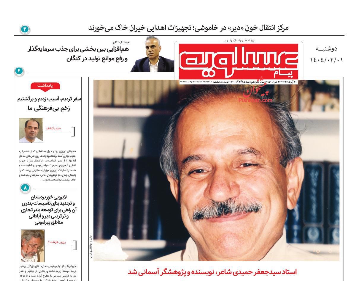 پیام عسلویه ، دوشنبه ۱ ارديبهشت