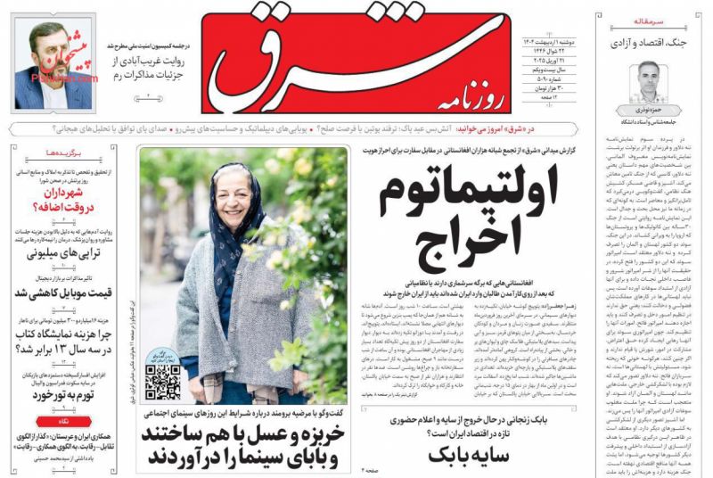 شرق ، دوشنبه ۱ ارديبهشت
