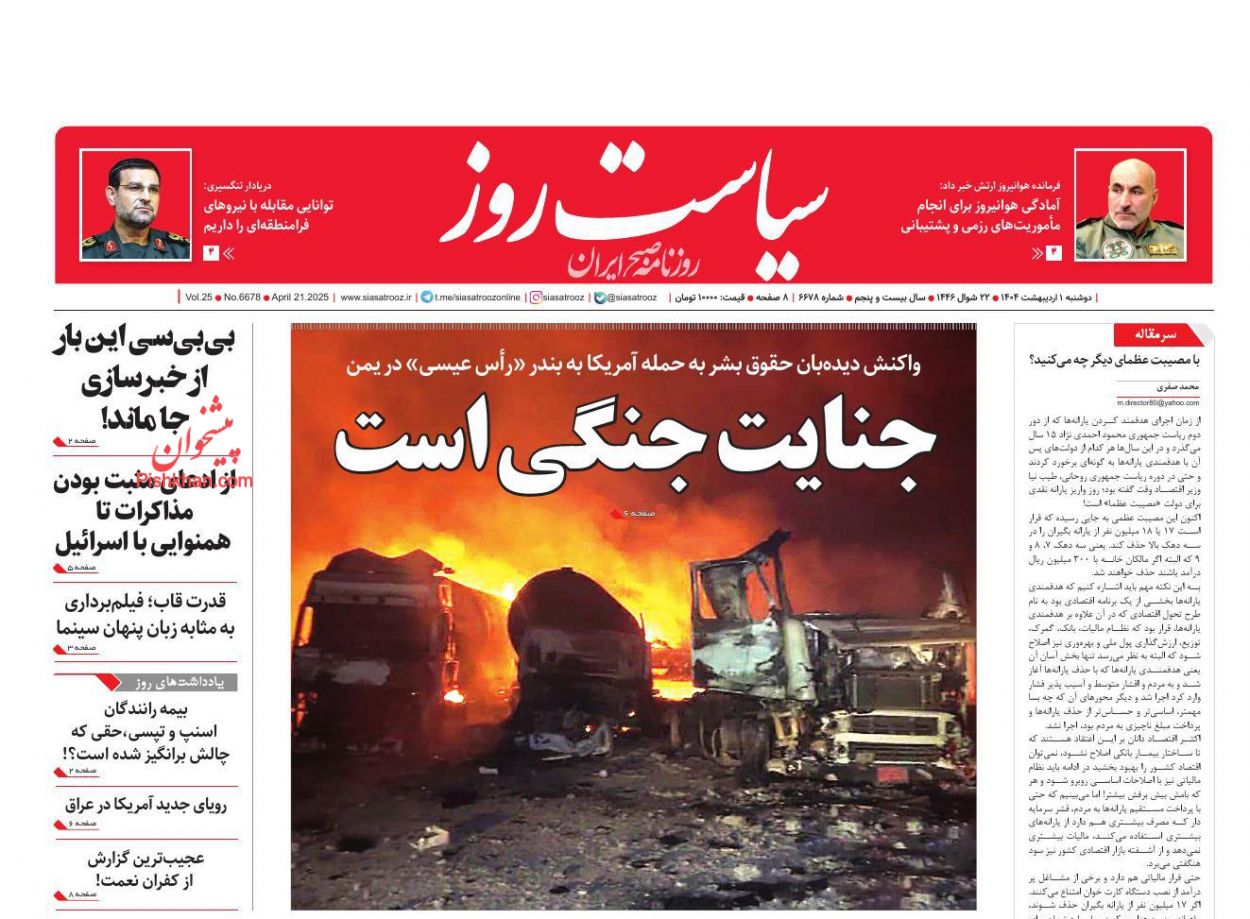 سیاست روز ، دوشنبه ۱ ارديبهشت