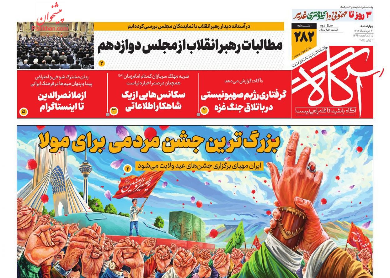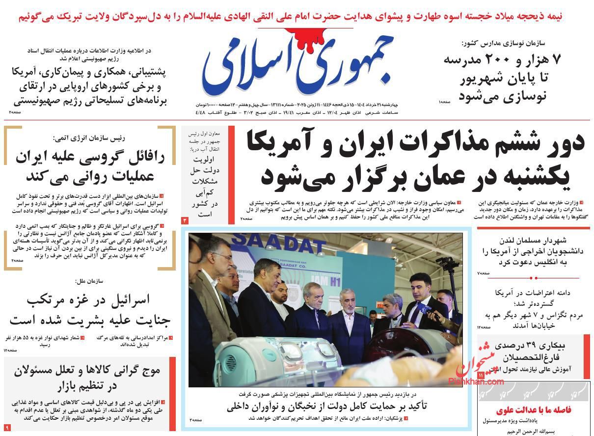 جمهوری اسلامی ، چهارشنبه ۲۱ خرداد