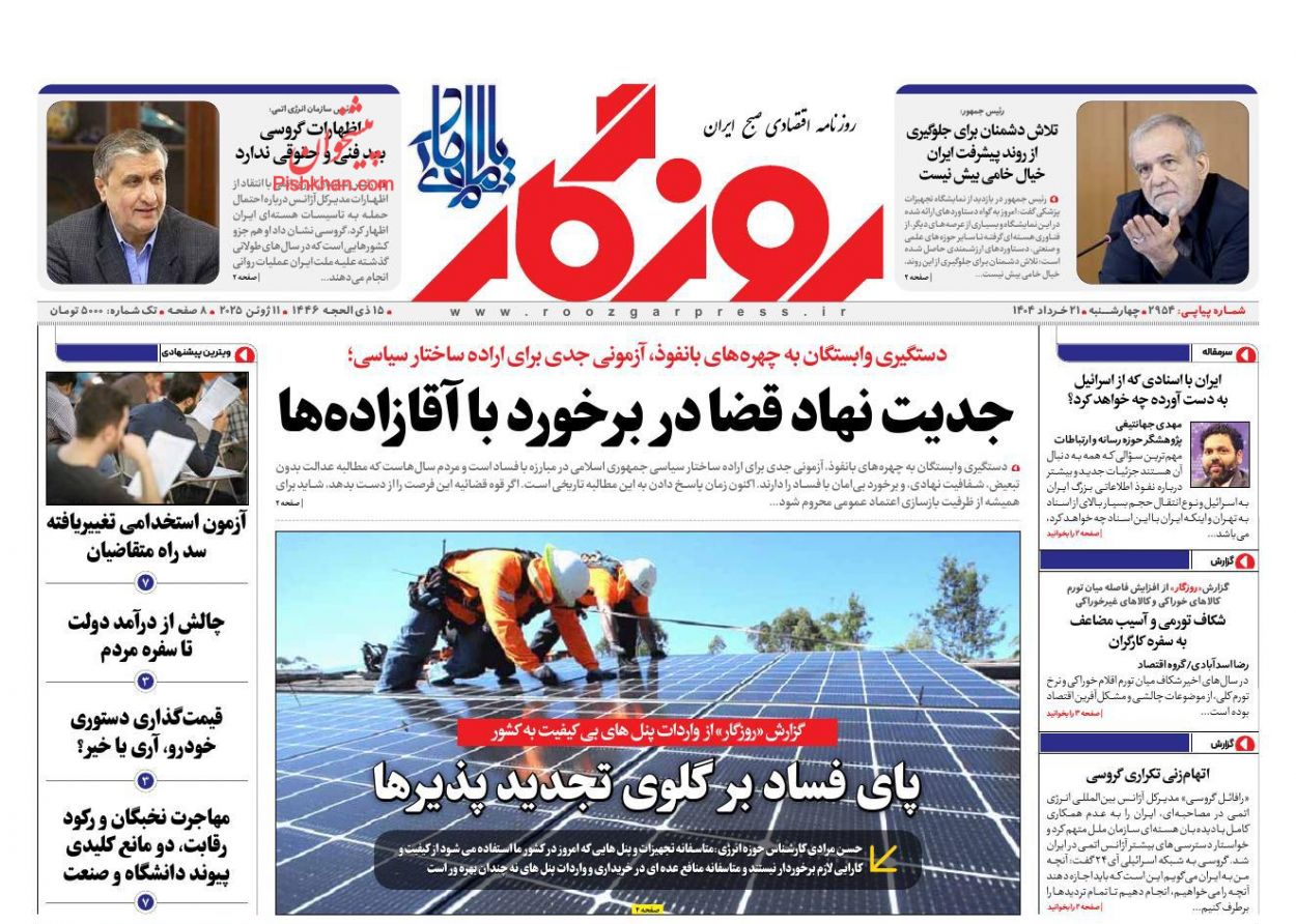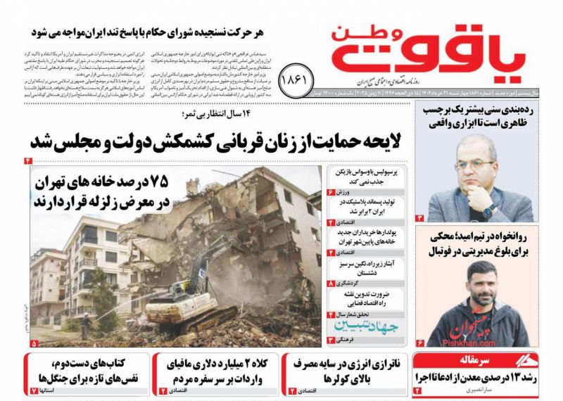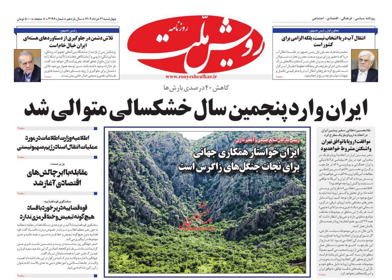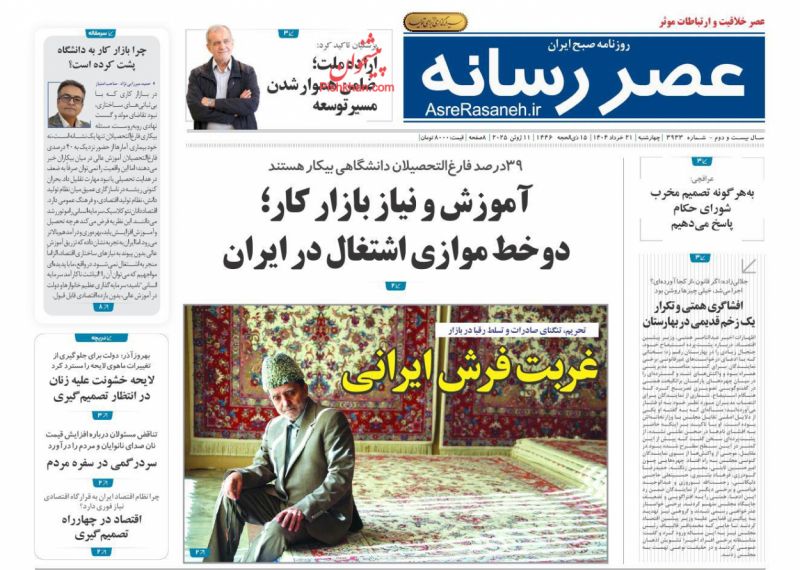 عصر ایرانیان ، چهارشنبه ۲۱ خرداد
