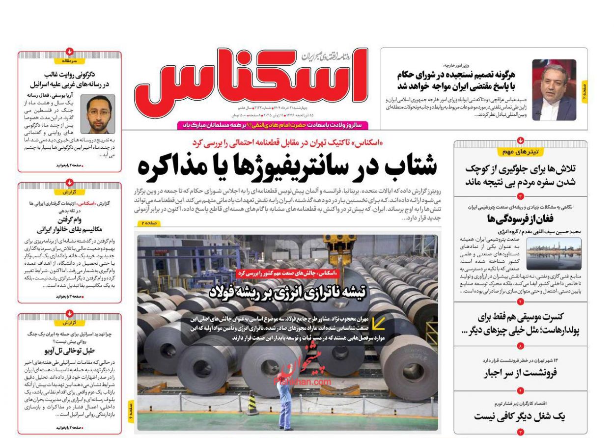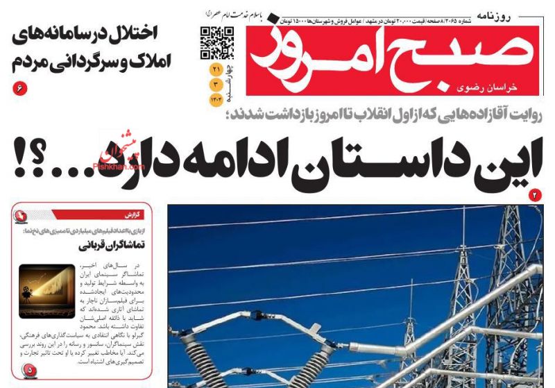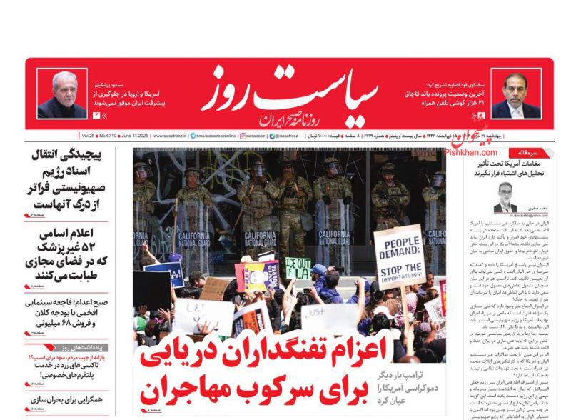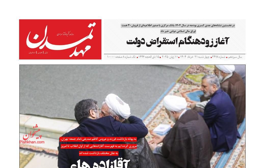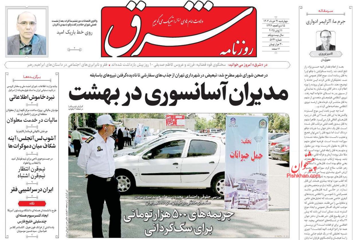 عصر ایرانیان ، چهارشنبه ۲۱ خرداد
