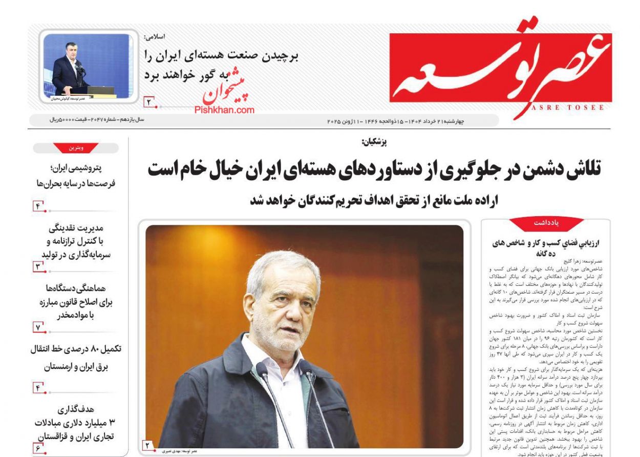 عصر توسعه ، چهارشنبه ۲۱ خرداد
