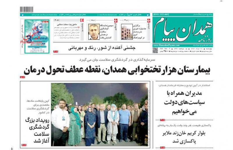 همدان پیام ، چهارشنبه ۲۱ خرداد