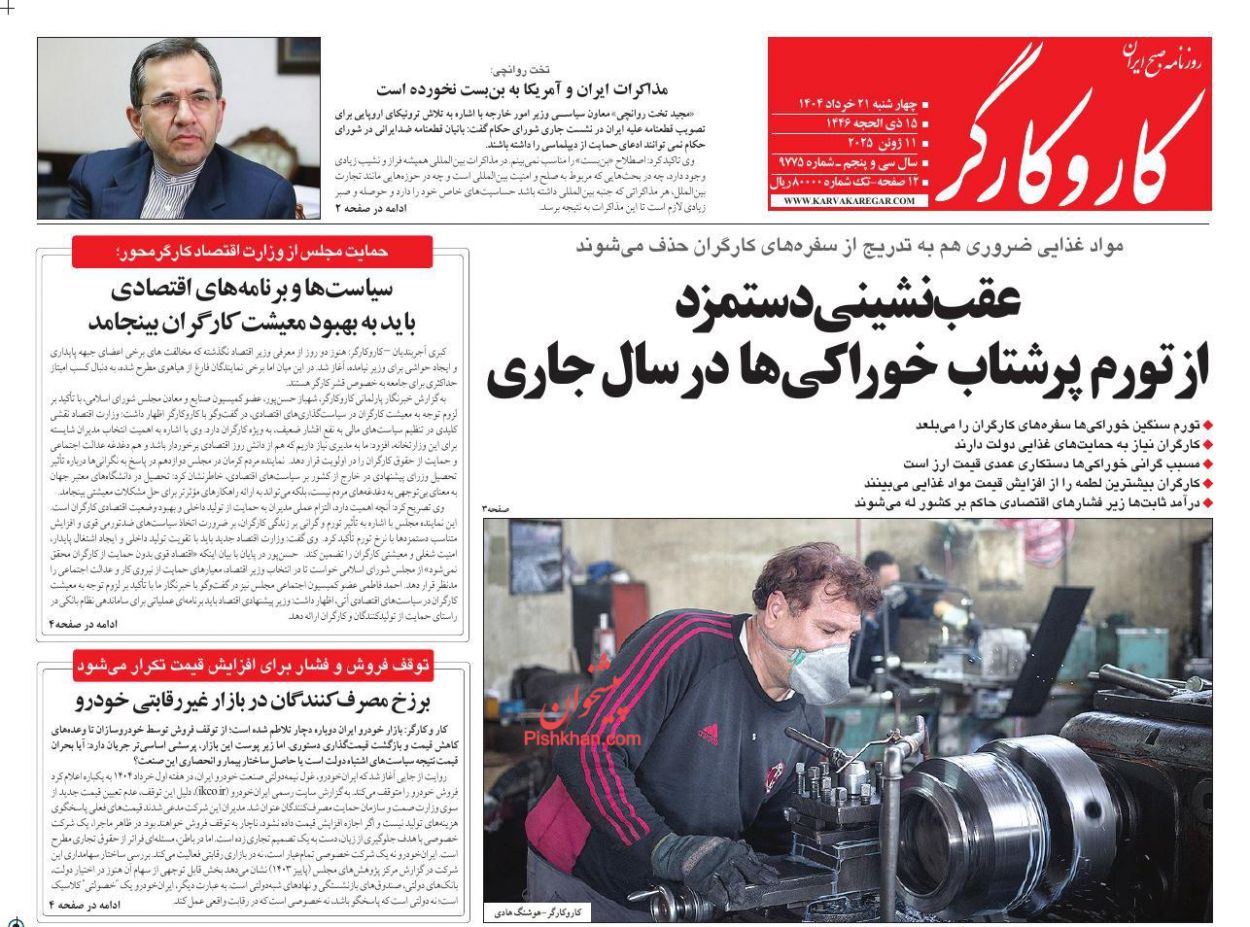 کار و کارگر ، چهارشنبه ۲۱ خرداد