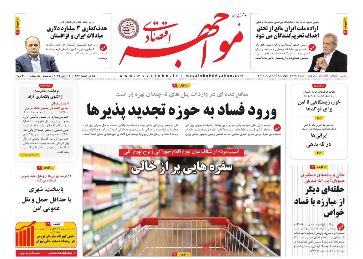 مواجهه اقتصادی ، چهارشنبه ۲۱ خرداد