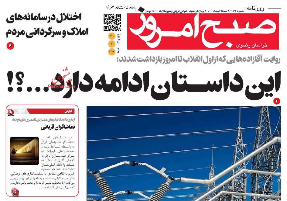 صبح امروز ، چهارشنبه ۲۱ خرداد