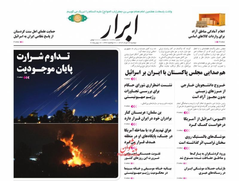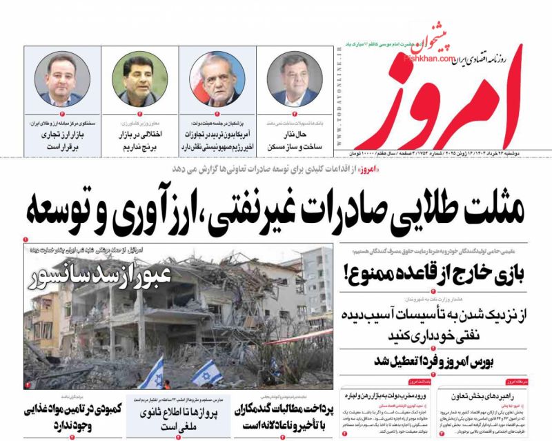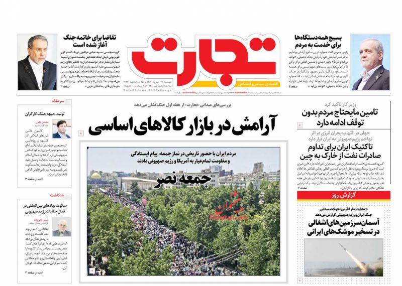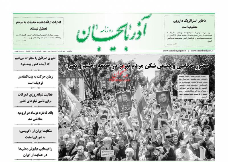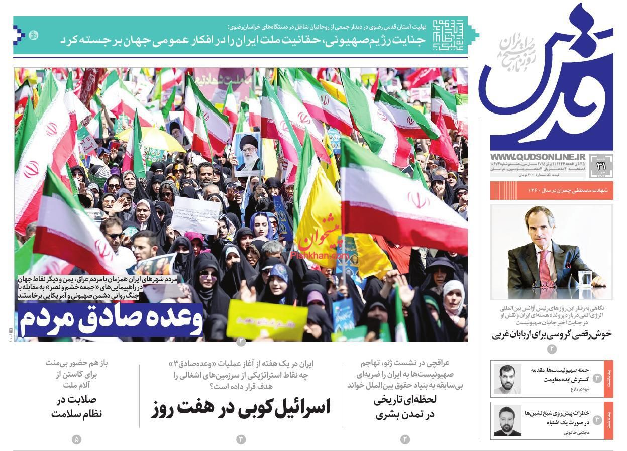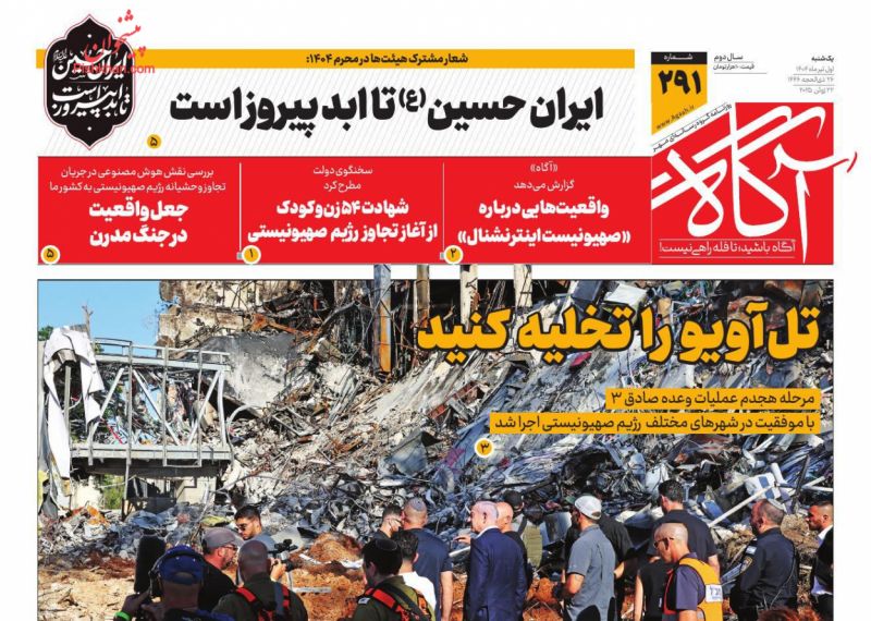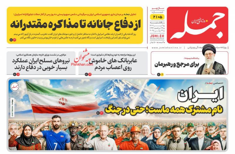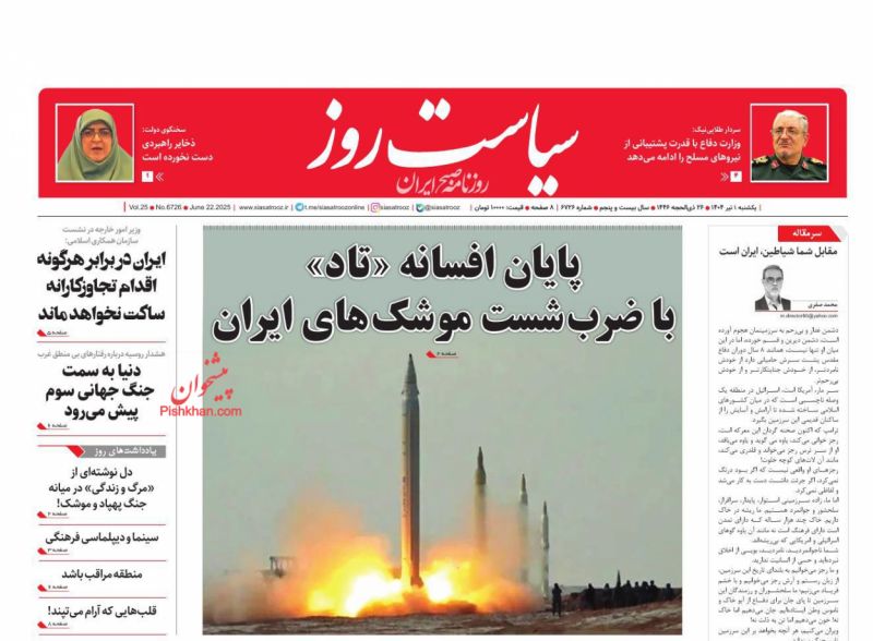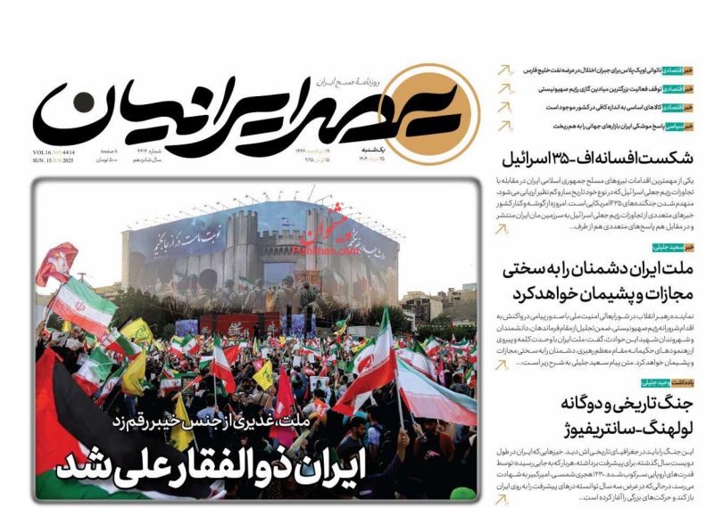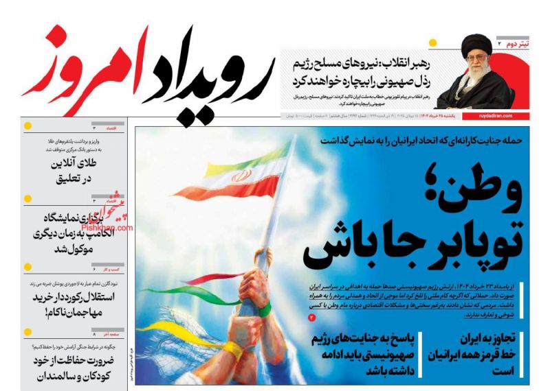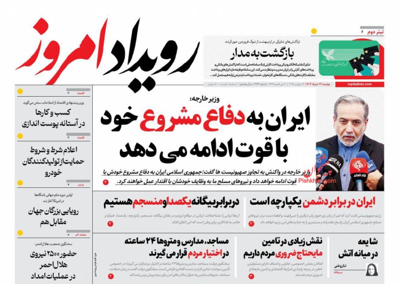 جمهوری اسلامی ، یکشنبه ۲۵ خرداد