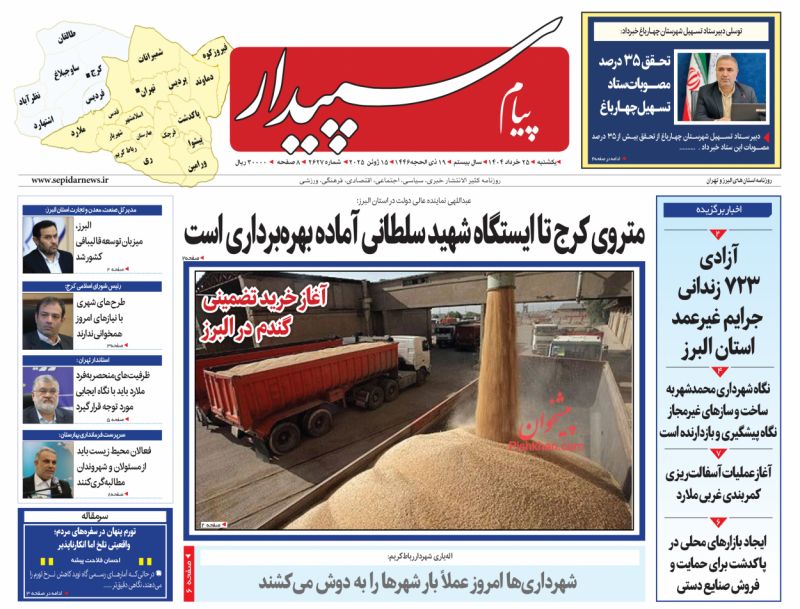 پیام سپیدار ، یکشنبه ۲۵ خرداد