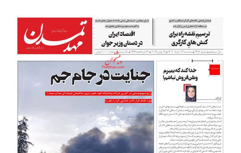 سپهر ایرانیان ، چهارشنبه ۲۱ خرداد