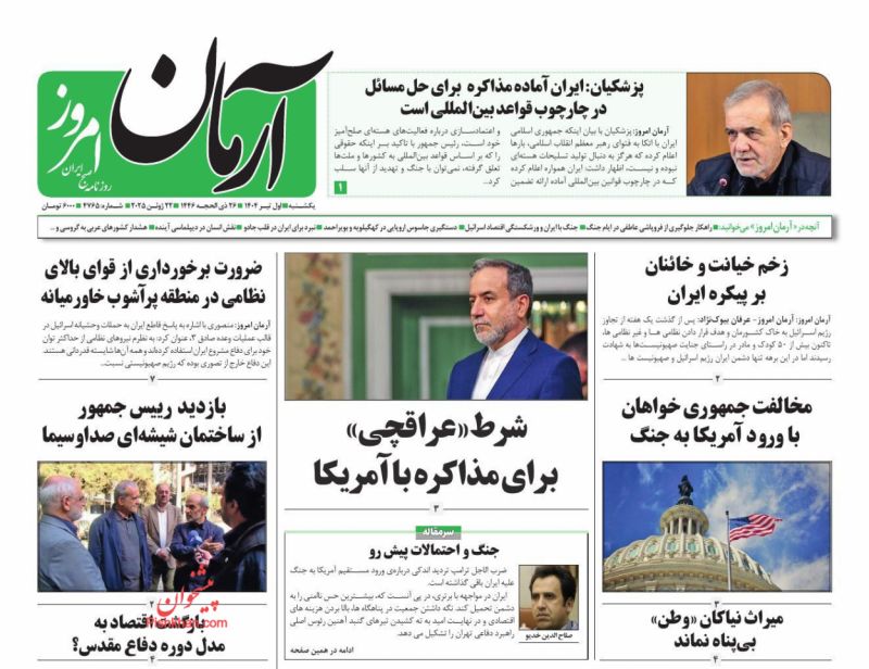 عصر ایرانیان ، یکشنبه ۲۵ خرداد