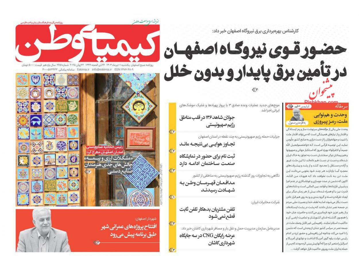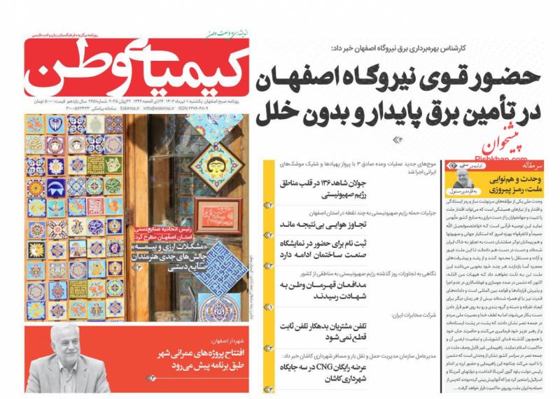 عصر اصفهان ، پنجشنبه ۲۲ خرداد