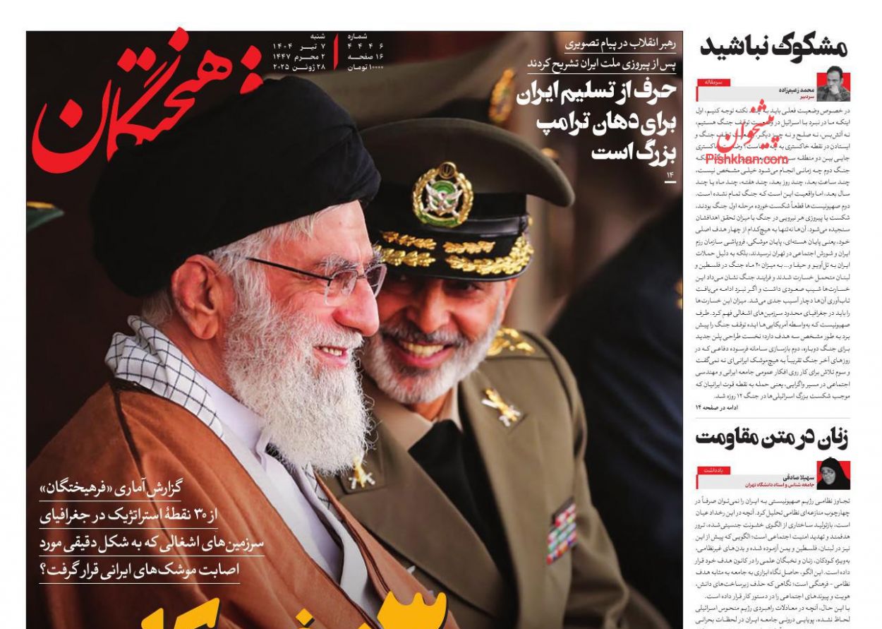 جمهوری اسلامی ، سهشنبه ۱۷ تیر