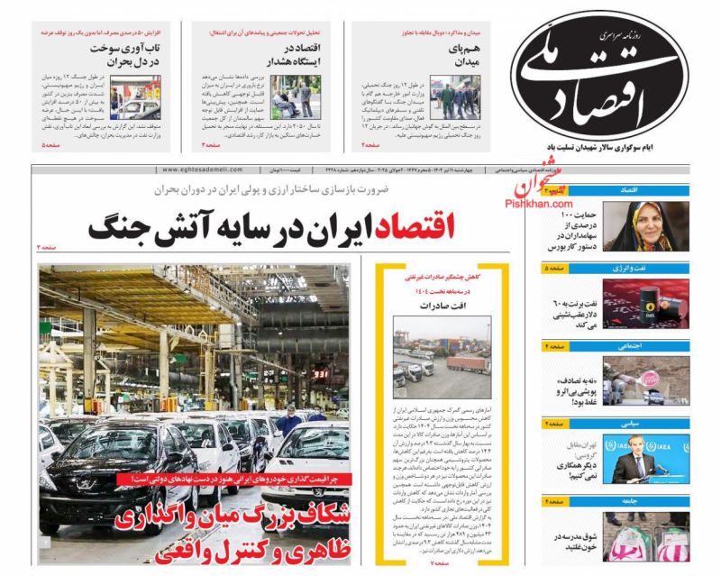 اقتصاد ملی ، چهارشنبه ۱۱ تیر