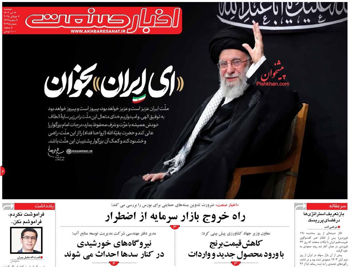 اخبار صنعت ، دوشنبه ۱۶ تیر