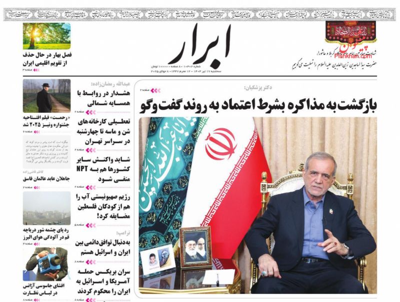 ابرار ، سهشنبه ۱۷ تیر