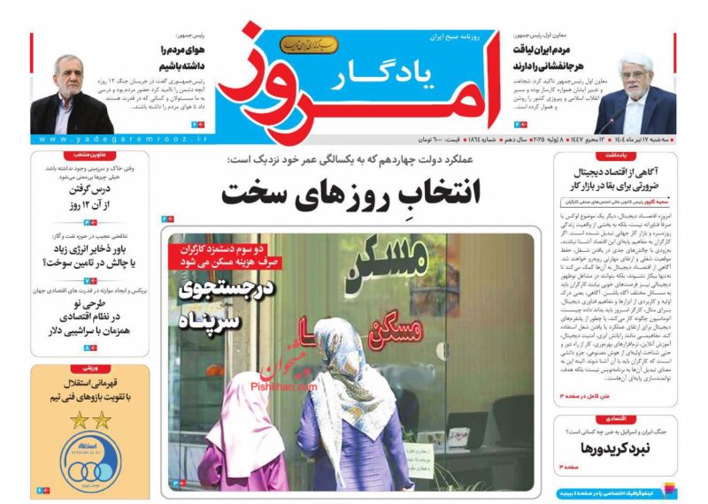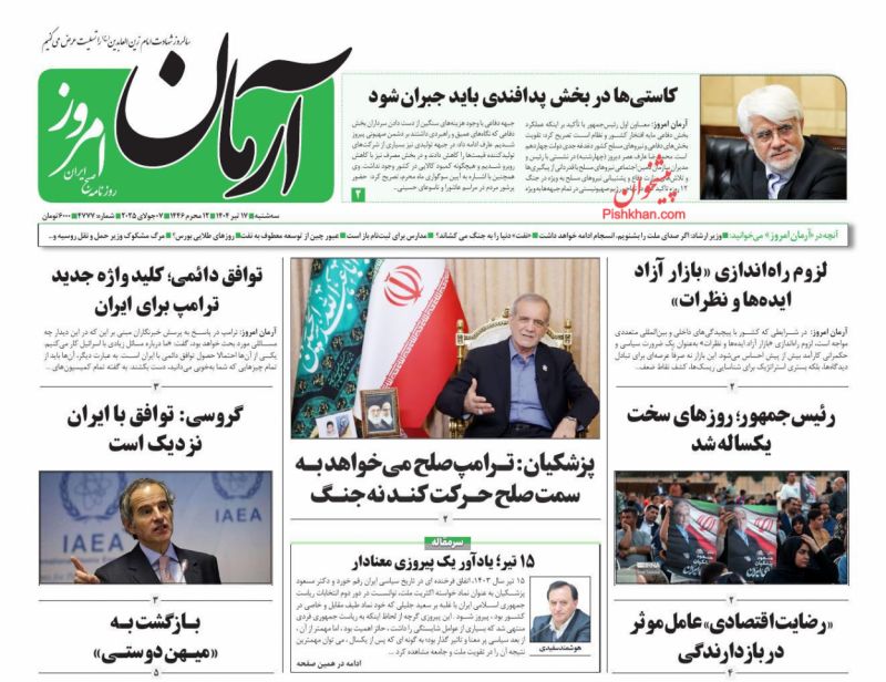 آرمان امروز ، سهشنبه ۱۷ تیر