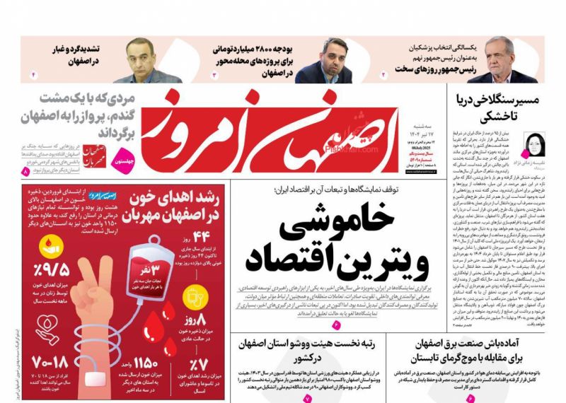 اصفهان امروز ، سهشنبه ۱۷ تیر